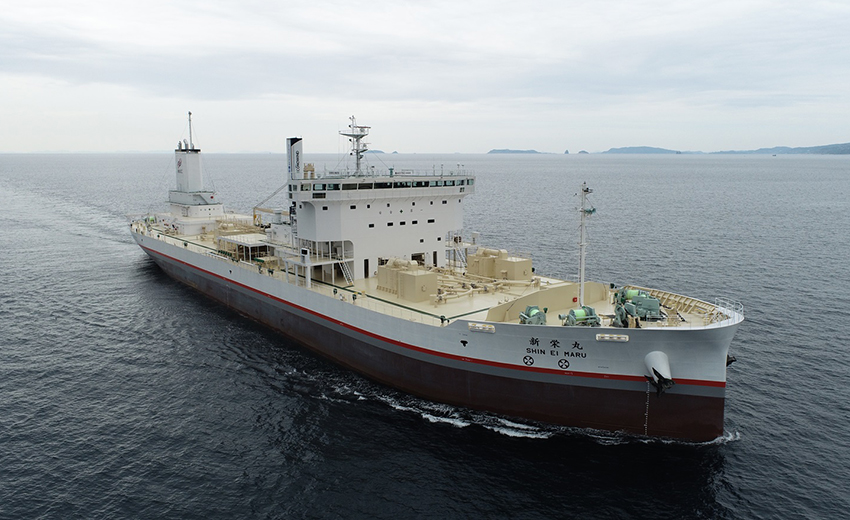 自社船は、石灰石専用船・セメント専用船5隻、総輸送能力6.9万トンの国内有数の内航船腹量を誇り、セメント専用船では国内最大級(2万D/W)の新栄丸を所有しています。