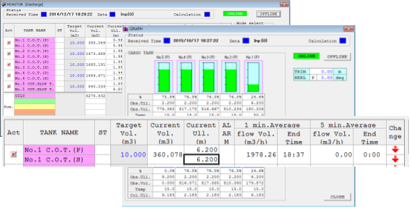 - 各タンク毎のレベル、容積、警告状態を一定間隔で取得し、画面に自動表示