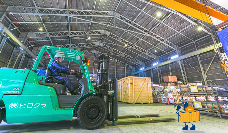ヒロクラの倉庫は広島港の宇品外貿地区に位置し、港に隣接した物流の拠点として、小さな部品から大型プラントまで多種多彩な貨物を保管しています。