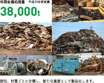 造船所の廃材購入、鉄および非鉄金属の買入、大小の陸上解体物から発生する廃材の購入、これらを有用物と必要のない廃棄物に分別しています。