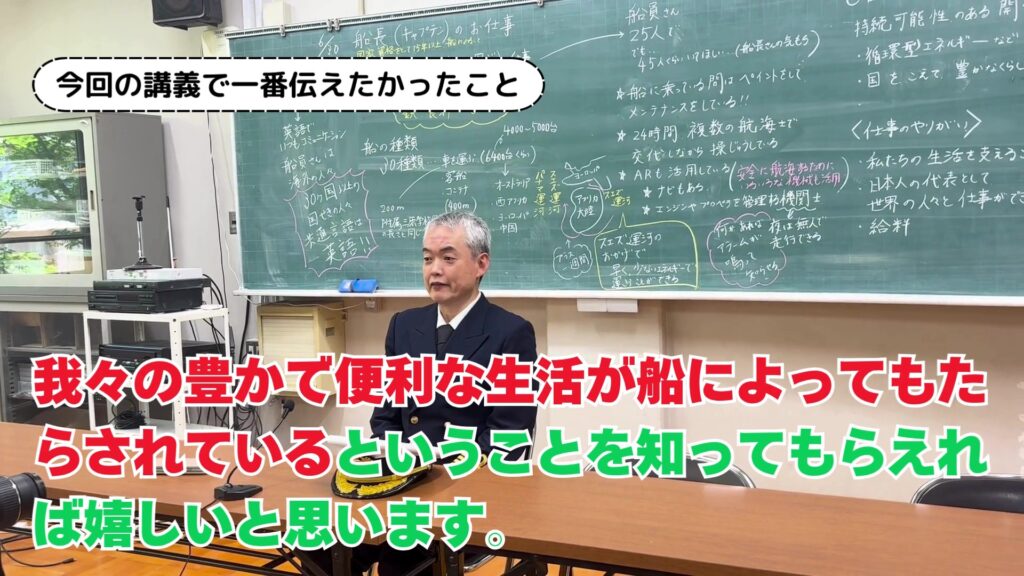 この講座を通して、多くの未来を担う子どもたちに海事産業の世界を知ってもらい、船に携わる仕事を将来の選択肢の一つとして考えてもらえると嬉しく思います。