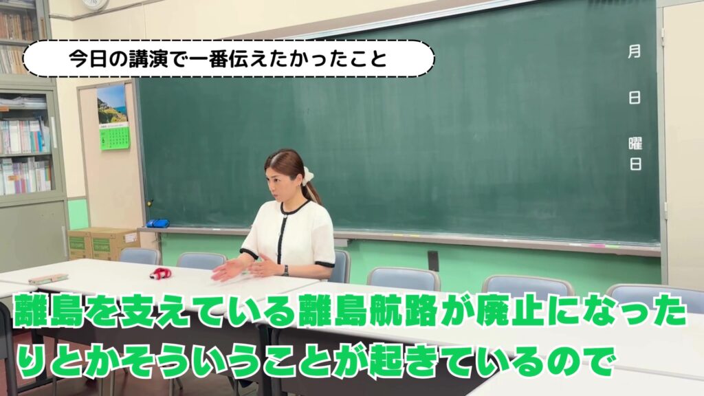 領海、排他的経済水域や日本の歴史を学ぶことにより、島の大切さ、島を守ることは日本の平和につながることを知りました。