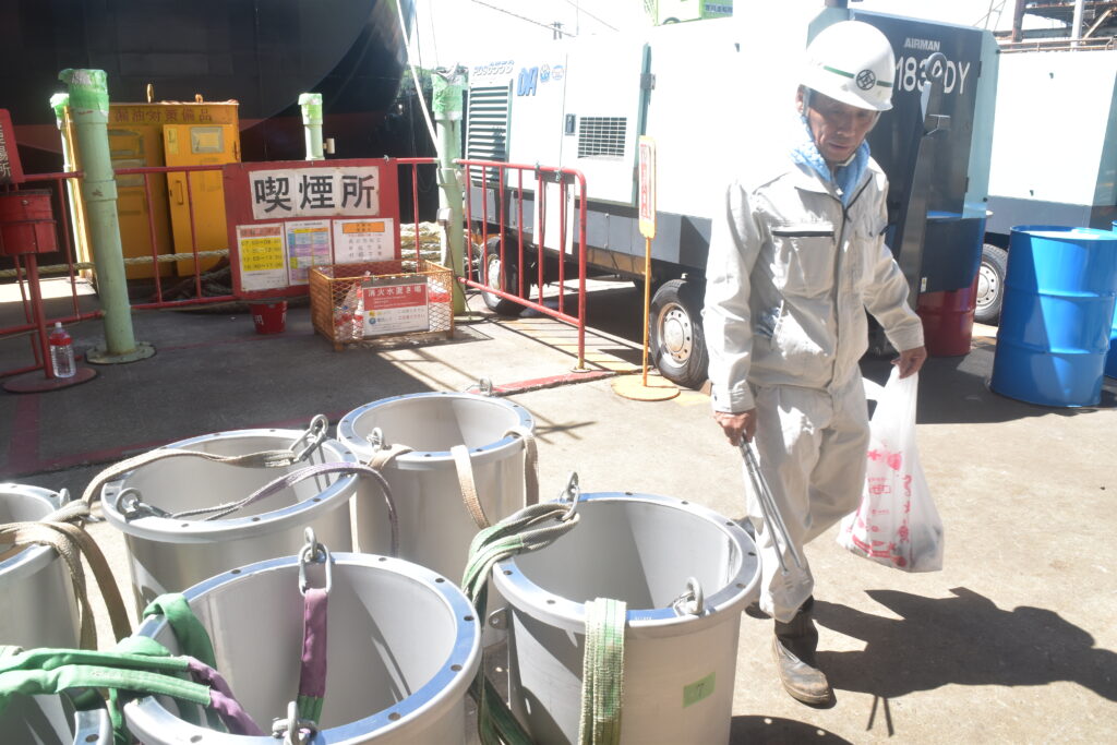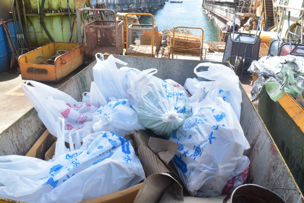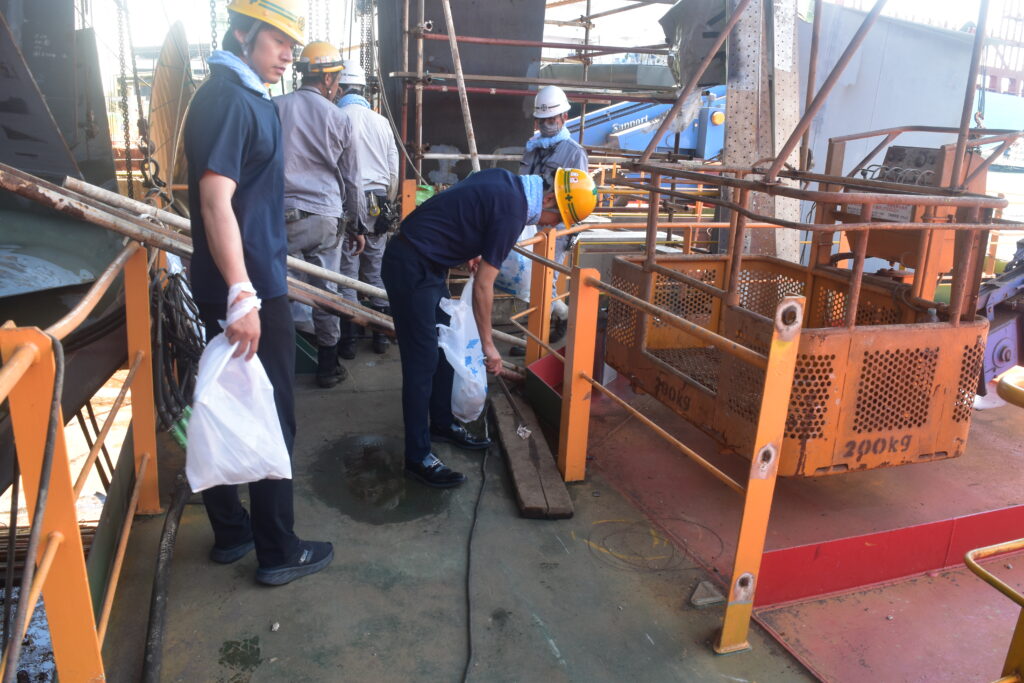 造船所の職員さんだからこそできる、船を使ったごみ拾いです。
