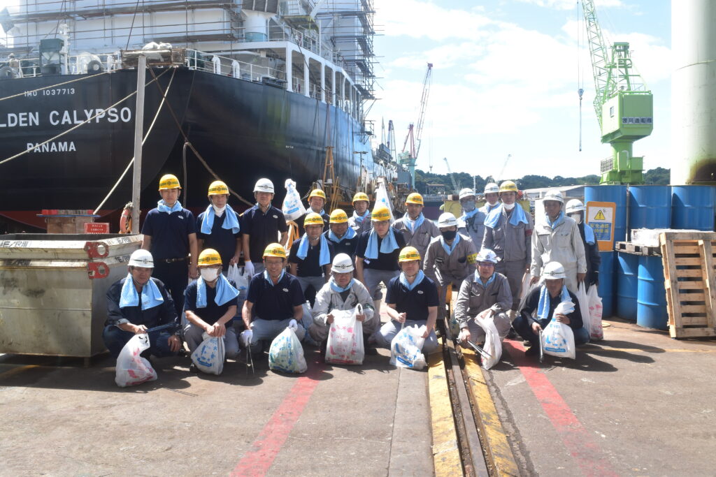 青い海を守るため、まずは造船所周辺地域、その後海上のごみ拾いもしています。