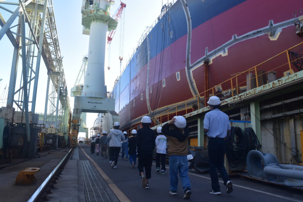 造船所見学で船がとっても大きくて、次は乗ってみたいなと思った!