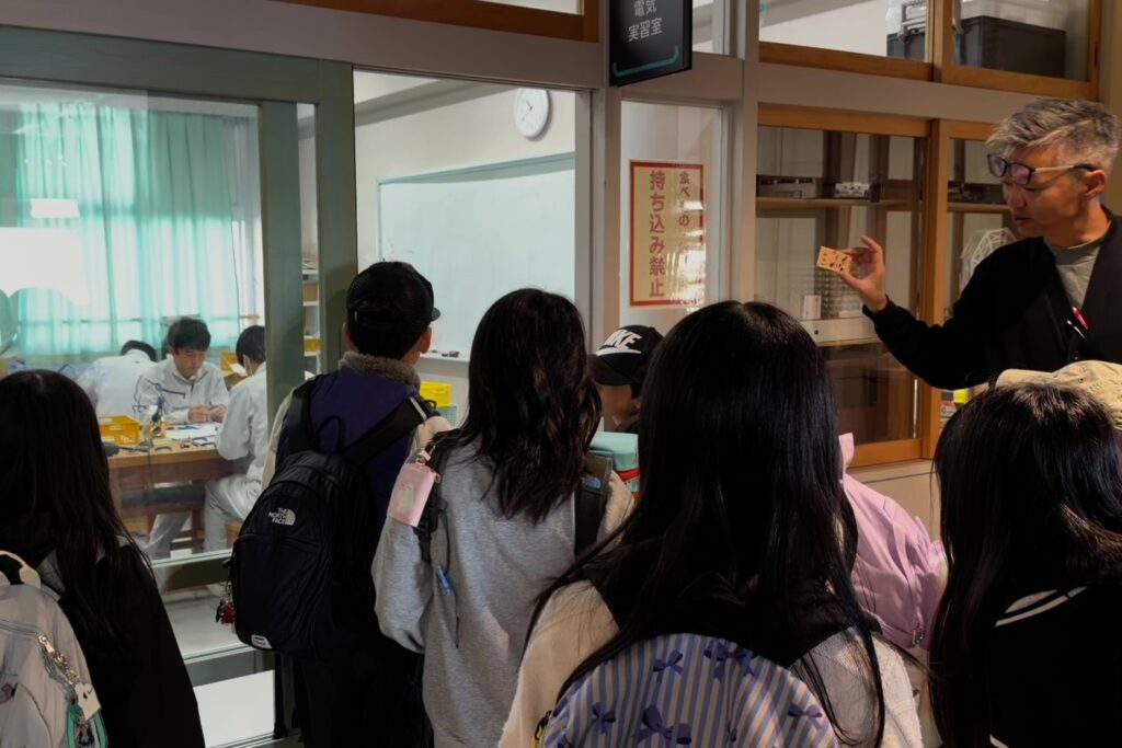 機械系学科・電気系学科・システム工学系学科、どの教室も普段の世界とは違っており、子供たちは大興奮!